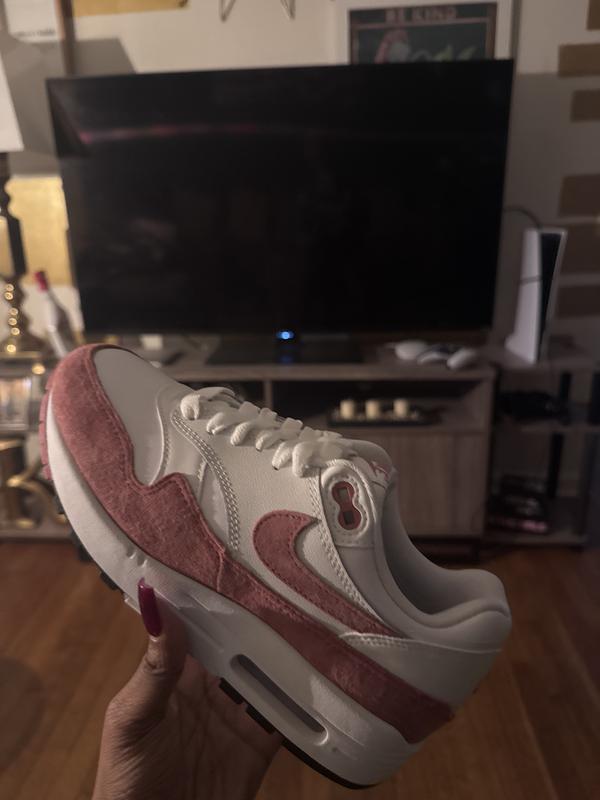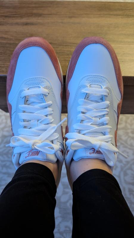 I got these in the pink color and they are SOO CUTE. I have gotten tons of compliments on them, and they look really crisp. I love wearing them with jeans or even with some slacks for an urban chic look. I think that these are some of my fave streetwear Nikes so far, as they have a really high-quality look from the faux leather and velvet-y accents. I love the pink color accents too, as they really make the shoes pop. The soles are nice and sturdy and I can walk around in them for hours! I had never had any air max before, as I usually go for the regular nike airs, but I think that the detail on the sole is a really neat touch. I wear these around pretty much everywhere, and am trying my best to keep them as nice as when I got them. They are relatively easy to clean since they aren't cloth, so I usually wipe them with a wet paper towel if I get dirt on them (but a lived-in look isn't the worst thing in the world!)
