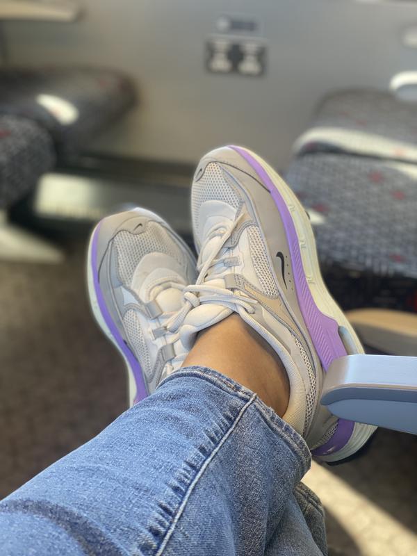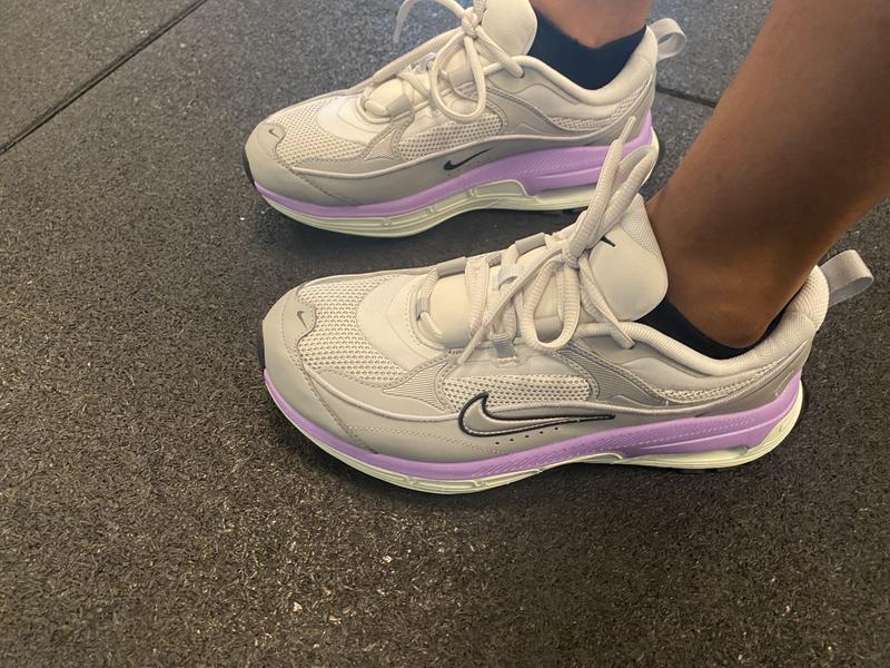 The Nike Air Max Bliss are one of the most comfortable walking sneakers I’ve owned. They are roomy enough to feel cozy but run true to size. I have tailor’s bunions on both feet and struggle to find shoes so I was pleasantly surprised that these were wide enough to where they didn’t cause pain. I’ve worn these for 5 days in a row, with ankle length socks, on my evening walks and they have not caused any blistering. Style wise, they do have a bulkier sole and have the typical “walking shoe” look but I actually think they look cute and on trend with the athleisure vibe. I love the color way of these sneakers paired with neutrals to let the purple pop. I will be wearing them on all my long walks and think they’ll last quite a while.