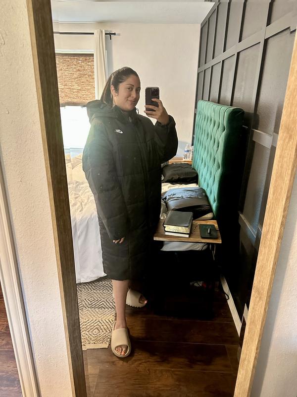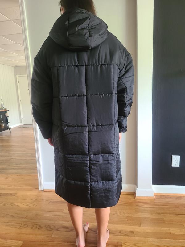 I was excited to find a long jacket for the mild winter we had in Connecticut but this jacket was so gigantic it looked comical. It runs very big in the arms and shoulders area, and I am not a petite lady. I am 5’7 160 lb and the medium was crazy big. Otherwise I would have really liked it though because I don’t need an ultra warm jacket.