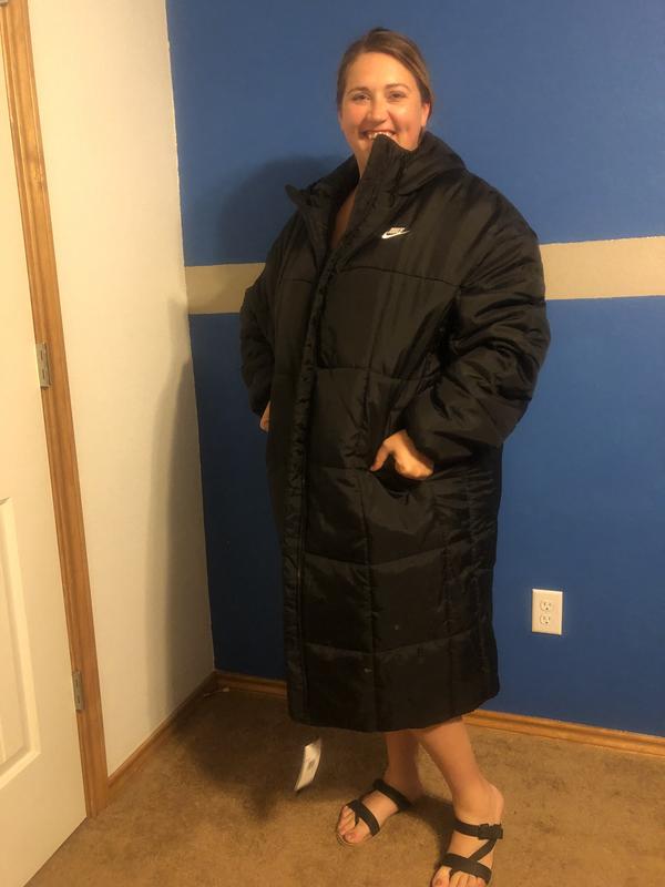 This is not a coat to wear in snowy cold weather. It's thin and doesn't keep you warm for long. I had my foster daughter try it outside. She is 5 ft 8. The length of this coat makes it difficult to close and somewhat walk. That wouldn't have been as big of an issue if it were at least warm, but it is not. When I think of the words "therma" and "Parka" I think warmth.. this is misleading and not the case with this coat. Nike used to be functionable instead of only fashionable.