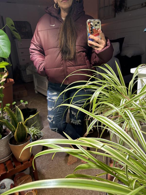 So cute and warm. Love it this puffer is actually puffy and so comfy and warm. I’m usually an extra small or small and decided to get the small for a more loose look to layer with hoodies for extra warmth. Was a good length not to cropped think if I got the extra small would have been more fitted and cropped. The length of the sleeves was good not super long or cut to short. Love the hoodie as someone with a big head and lotta hair love when the hood doesn’t fit super tight and look awkward this is the perfect hood. And for extra sizing reference my waist is 26inch my bust is 32in and I weigh about 122pounds.