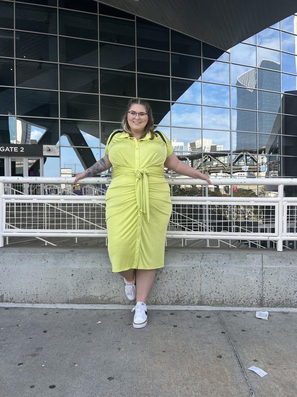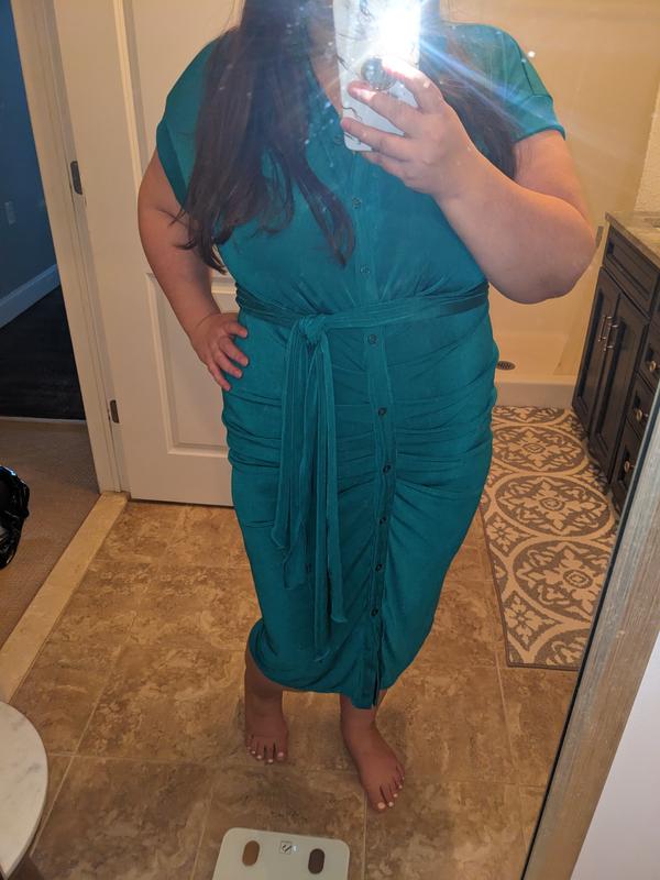 Trendy Plus Size Tie-Front Ruched Shirtdress