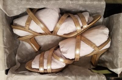 Very comfortable strappy sandals right out of the box. This shoe is not too high, so it will be great for dancing the night away at an upcoming wedding. The straps do not bind at all. These can be part of a very dressy event, or can be worn out to dinner or wherever you need a nice-looking, chic and comfortable sandal.