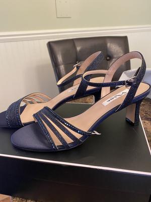 Perfect dressy sandal. I bought in Navy 5 years ago for my 1st sons wedding. So comfortable I wore them outdoors for the ceremony and inside for the reception. Heel height is perfect, not too high or low, sturdy without being bulky. I never took them off. Worked great in grass and on the hard surface of the dance floor. My other son is getting married this year and I bought them again in Gold for his wedding. They worked so great for the first wedding, I know they will be perfect for this wedding too. The Gold is very pretty, but it is actually more a champagne, which is better for me. Lots of reviewer say they run narrow, but I have a narrow foot so it is prefect for me. Length is true to size. My navy pair is now 5 years old and I have worn multiple times, and they still look and feel great. Nina shoes don't disappoint. Buy this shoe you will be happy you did.
