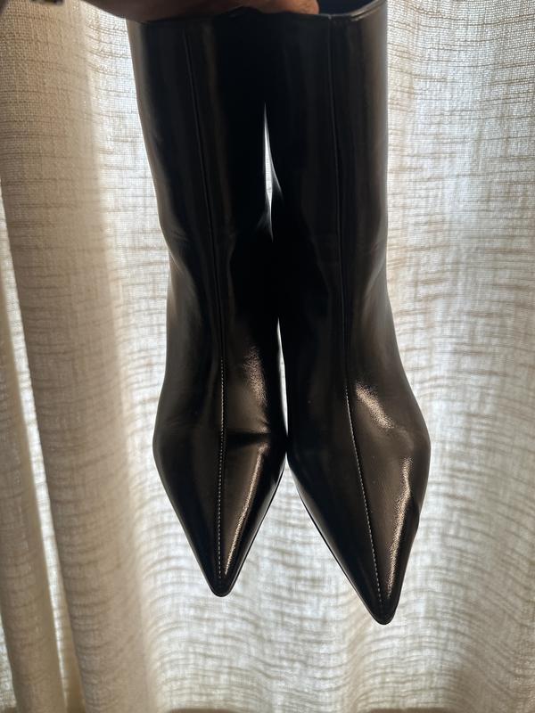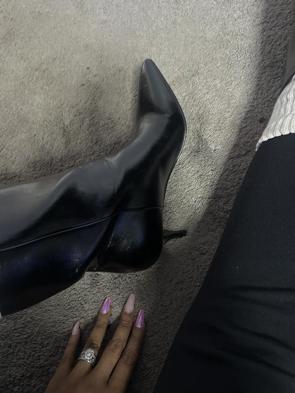 Like the other reviews, the top of shoe, calf, is way to wide and personally not flattering. Other than that, the color and heel is perfect. Sadly returning.
