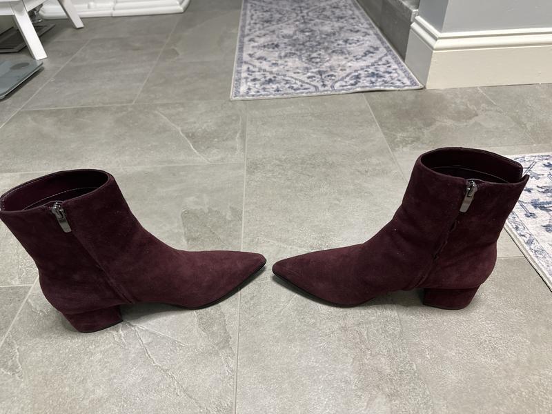 I love the boots. I would give the 5 Stars but they squeeze my toes just oh so slightly. I love the mid heel height and of course the suede material. So classic!