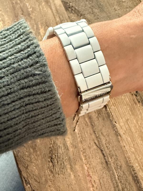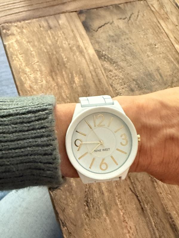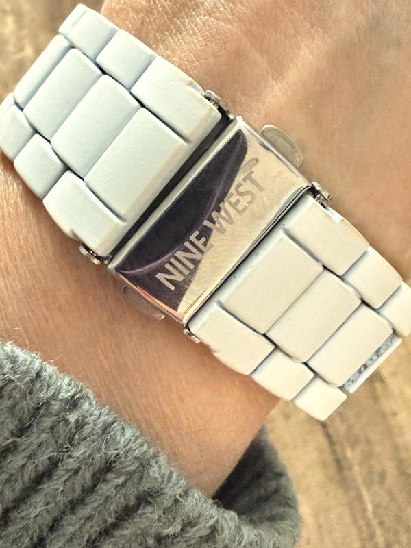 This Nine West womens quartz white alloy watch was all I was hoping it to be and more; It is not too heavy on the wrist.