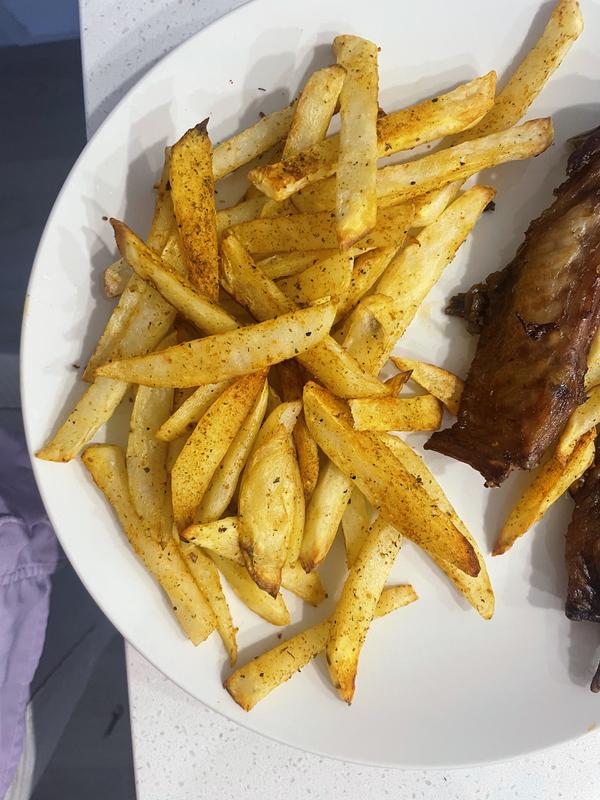 I love this air fryer. This is perfect. I can cook two things at the same time cooks it thoroughly and efficiently and it’s my second hand in the kitchen.Cant live without it!