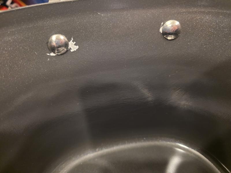 I bought this a a week ago to replace my old crock pot that lasted 15 years. I opened it and hand washed it with a sponge and dried it. I spent a lot of money on making a huge batch of chicken vegetable soup for a family gathering. I had to throw the whole batch out because as it cooked the inner coating came off around the bolts and mixed all in the soup. Very disappointed in this product.