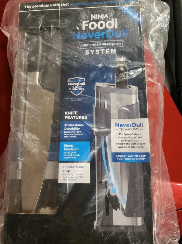 The Ninja Foodi Never Dull System Knife Sharpener works extremely well and extremely easily. It’s basically foolproof. I’ve had other sharpeners and sharpener stones, but this one works the best, albeit only on a Ninja brand chef’s knife. The 8 inch knife is also sturdily made and feels comfortable in my hand. It’s good to know it will always be sharp.