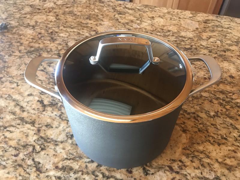 I've had my NeverStick Set for over a year now. It's never failed me, until I realized I needed a larger stock pot. Which my original set did not included. Because it certainly would have come in handy during the Holiday Season. The largest pot from my original set, nests neatly inside the stock pot. Making storage a breeze.