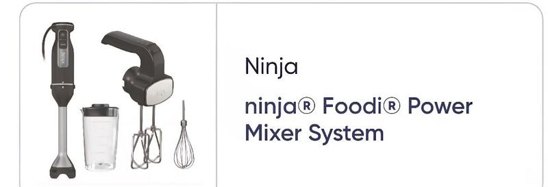 Review: The Ninja® Foodi® Power Mixer System is a powerful and versatile handheld mixer that makes baking and meal prep easier and more efficient. With strong motor performance and variable speed settings, it effortlessly mixes batters, doughs, and creams to smooth, consistent results. The ergonomic design feels comfortable to hold, and the included attachments add flexibility for a variety of kitchen tasks. A reliable choice for home bakers and everyday mixing needs. Summary: Powerful, versatile mixer with ergonomic design and effective performance.
