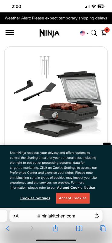 I just got my ninja grill today, shipping was fast. I can’t wait to cook. It’s a good size not too small or big. Perfect for a family meal.