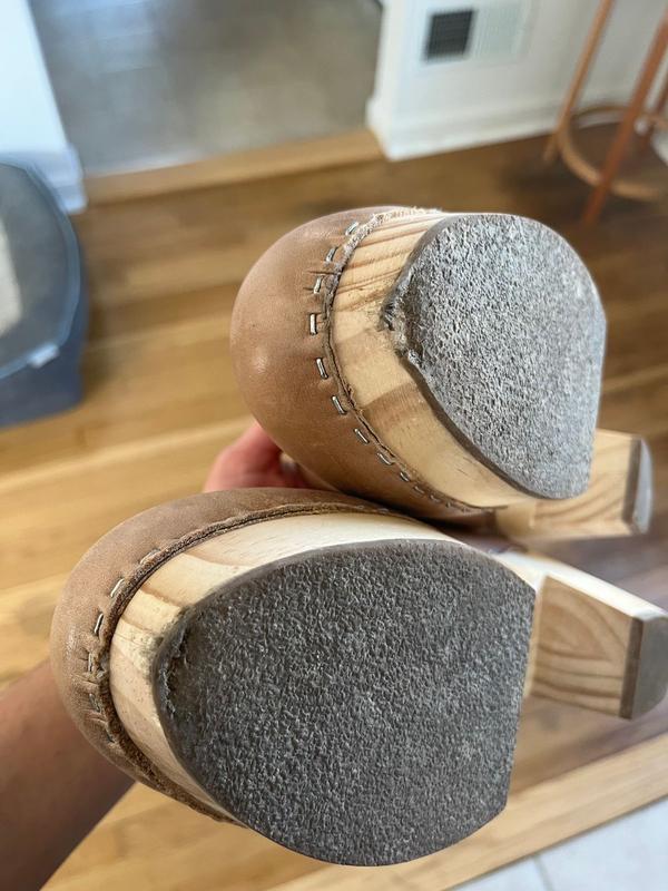 Beautiful clogs! Exactly what I was looking for. 4 stars only because sizing is hard to pin down. I was taking a chance buying them as final purchase (my fault, I know - but I loved them!) had to rely on reviews for sizing and they arrived too large. I'd say they're true to size, if even a little big. Sadly, I wasn't allowed to exchange for sizing - I really feel like that should be an exception. Completely understand not being able to exchange for a different style etc, but at least size when the size is in stock - let customers actually be able to wear the shoes being sold properly. My fault for taking the chance and would NOT recommend buying final sale unless you FOR SURE know your size. Otherwise they are just a gorgeous in person as online.
