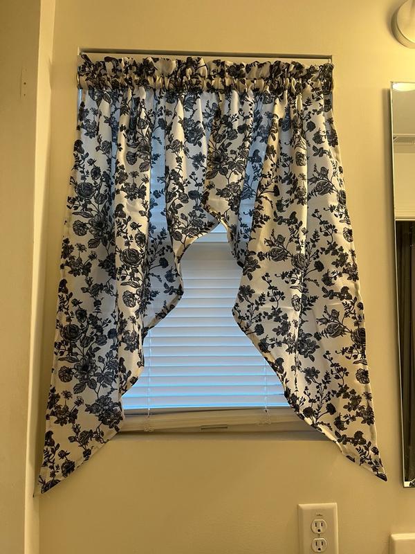 This kitchen swag pair are really well mad, easy to install and great look for your kitchen. Adds a nice touch when windows have blinds . Very durable material , with a nice fit . Must consider if you are looking for a nice kitchen swag pair.