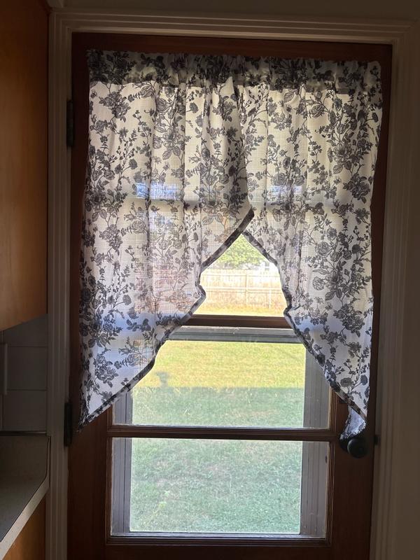 Elodie Tonal Botanical Semi-Sheer Rod Pocket Kitchen Curtain Swag Pair