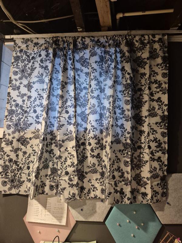 I love the looks of this curtain. The black and white is classic and will go with a lot of decor. The flowers are very detailed. Now I need to find the long curtains to match this one in my kitchen.