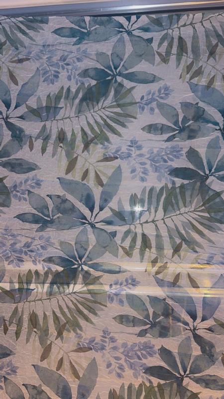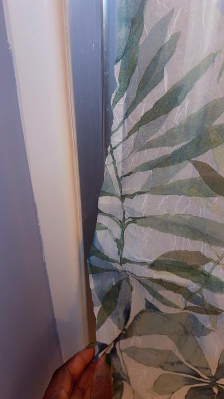 These are gorgeous curtains. The material feels good quality and features a crinkle texture that looks good and hides any potential creases or wrinkles that I have seen in other curtains. The sheer fabric has a beautiful green watercolor design of tropical leaves. These curtains add a vacation feel to my guest room.