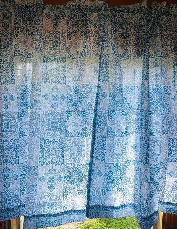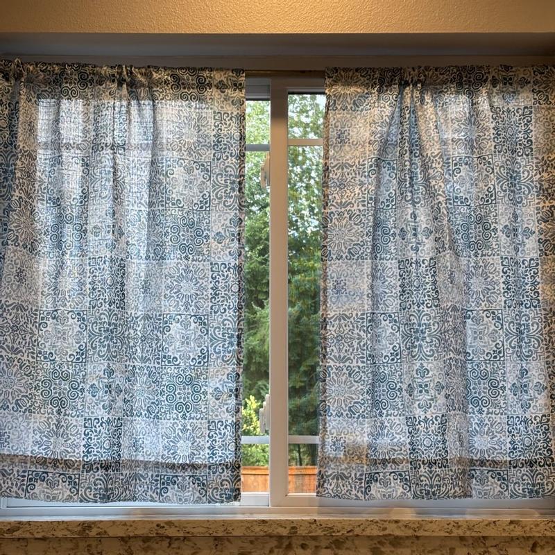 Beautiful little kitchen cotton curtains! Very lightweight and has a beautiful print - looks much better in reality rather than on image. It passes through some light but at the same time provides cute coziness in my kitchen! I love natural products, and this curtain is really cute 😍