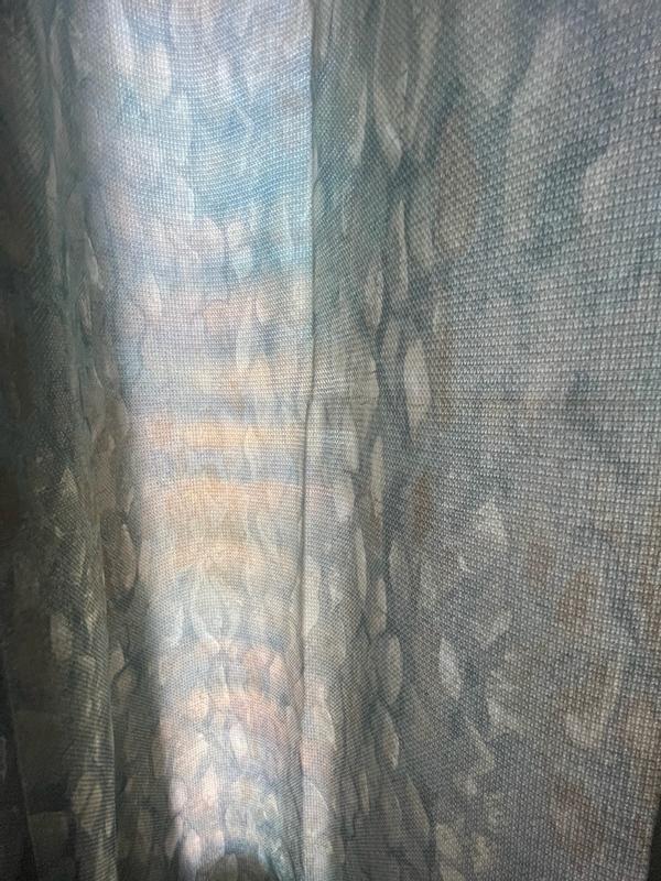 I love the color of these panels. The lightest blue and green makes a nice contrast against darker colors. They are a nice thickness that allows light in or even with a shade a bit darker. The material is silky soft, very durable. Machine washable is a plus. Comes in assorted lengths. Very pretty.