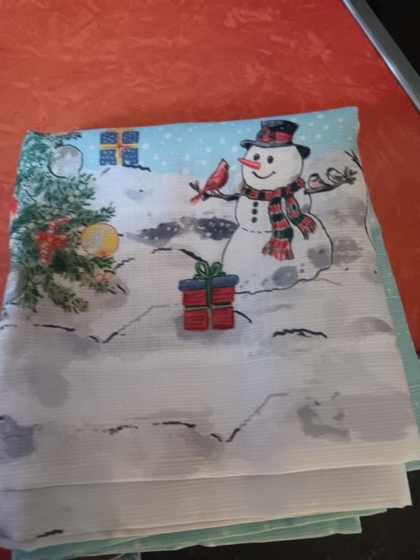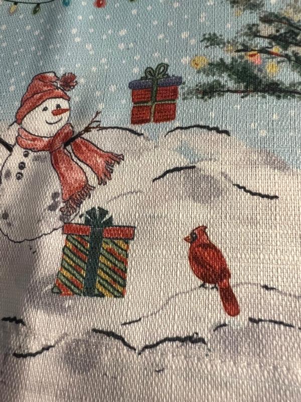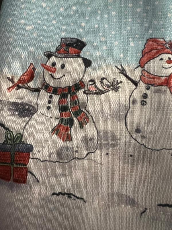 These curtains are a cute way to add some Christmas flair to your kitchen. The quality is nice although they feel a bit scratchy. The print is cute and traditional with the snow and snowman. They are not quite my style but I enjoy them.