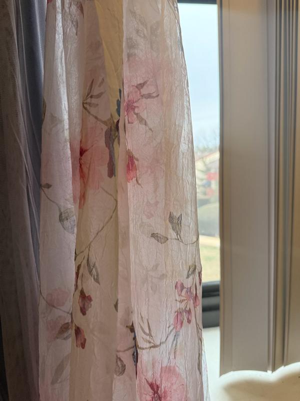 The No. 918 Jocelyn Floral Print Crushed Voile Sheer Curtain Panel adds the perfect touch of softness and charm to my room. The floral pattern is delicate and airy, and the sheer fabric lets in just the right amount of natural light while maintaining privacy. Easy to hang, wrinkle-resistant, and instantly brightened up my space—absolutely love it!