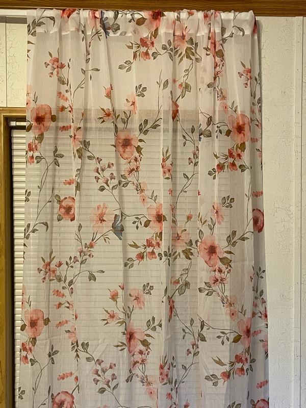 Jennifer Floral Print Crushed Voile Sheer Rod Pocket Curtain Panel