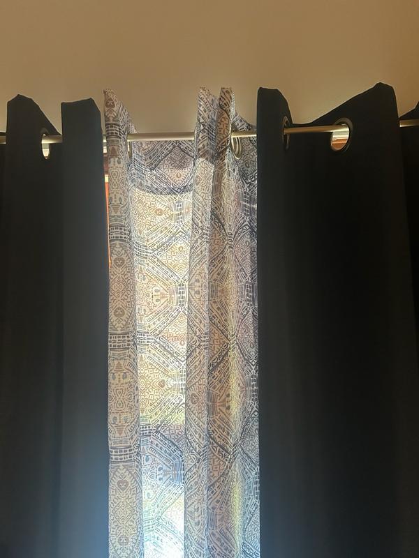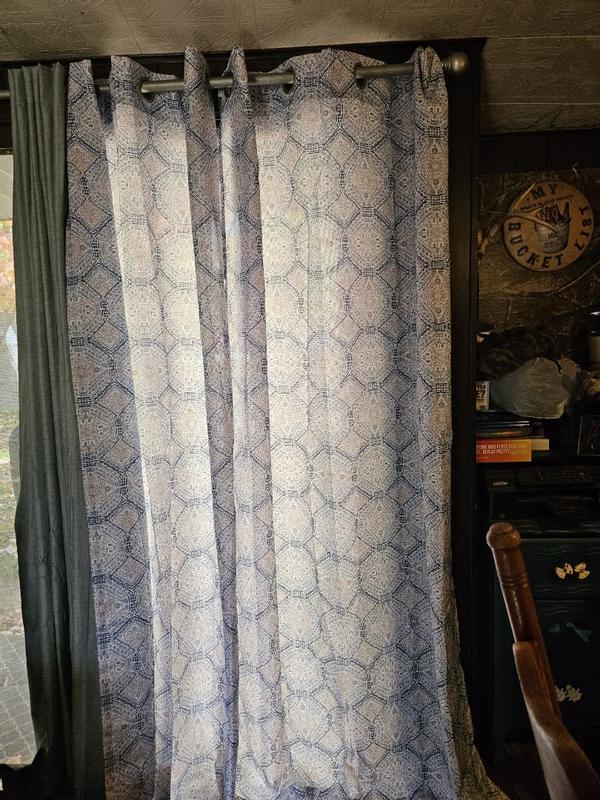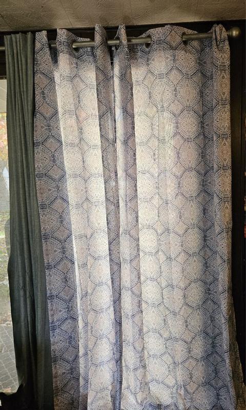 I received this product complimentary from Influenster and No. 918 in exchange for my honest review. I like the pattern of these curtains but I do wish they would filter a little more light desire being semi light filtering, especially given how thick the back is. Looks nice however.