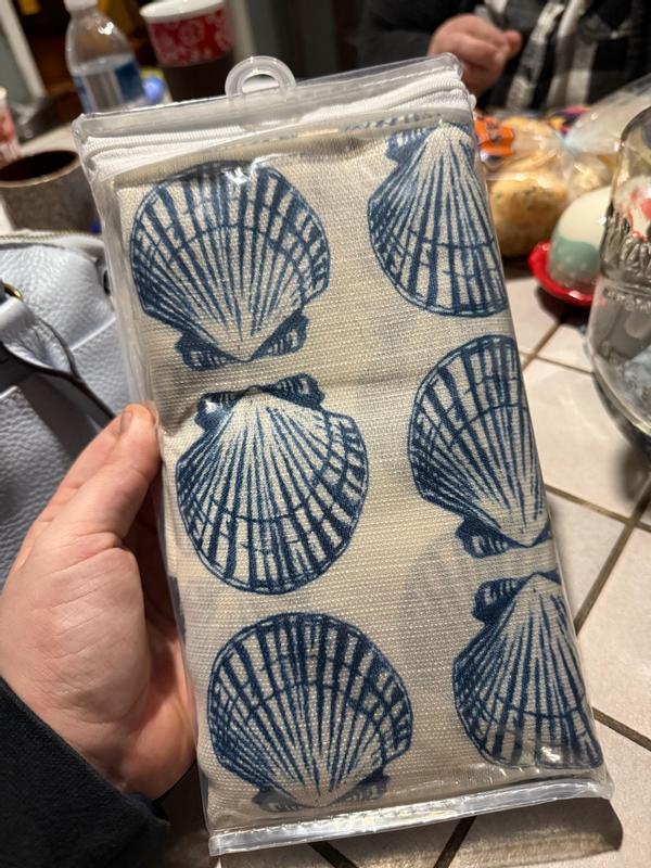 Seaside Tonal Seashell Print Semi-Sheer Rod Pocket Kitchen Curtain Tier Pair