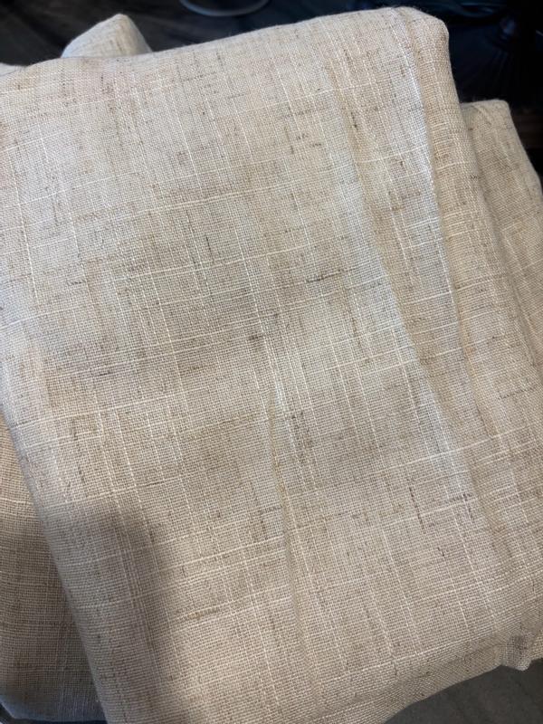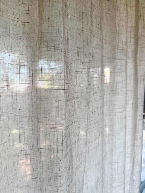 The neutral linen curtains are sheer yet durable. They fit my patio sliders perfectly. These curtains are very versatile. Their simplicity bring light yet privacy. Highly recommend.