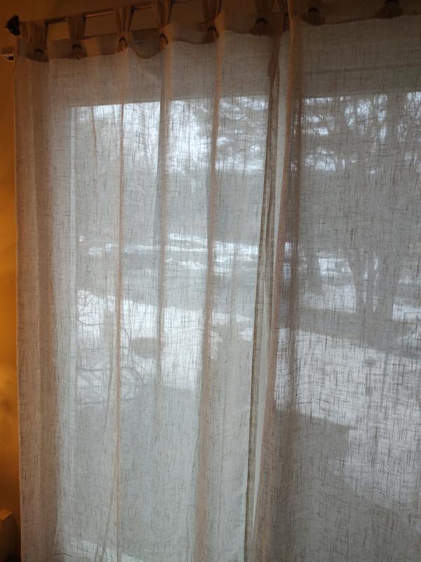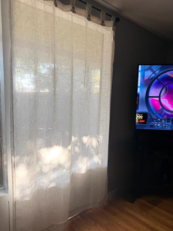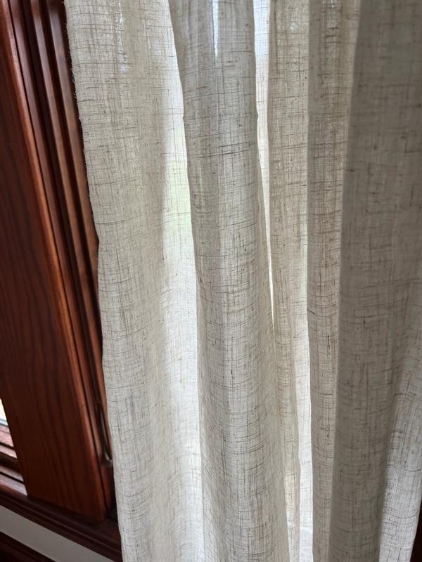 I am very pleased with these curtains. The fabric is lightweight and soft, with a beautiful linen texture that looks elegant and timeless. The sheer material filters light gently, brightening the room while still giving a sense of privacy. Installation was quick and simple — the tab tops slide easily onto the rod without any extra effort. The size is true to the description, and the panels drape nicely, adding a cozy and airy touch to both bedroom and living room. Even after washing, the fabric keeps its shape and doesn’t shrink. A perfect balance of quality, style, and price.