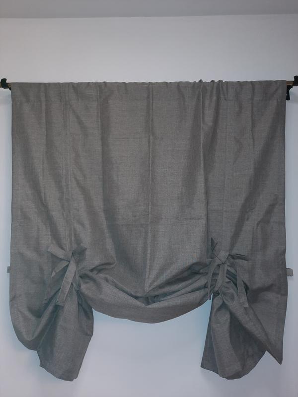 This Tie-up shade looks perfect in my laundry room! It gives off the modern look, and the material is very soft yet durable! The tie-ups make it great for whether I want to leave them untied for the privacy or tie them for some light to come in!