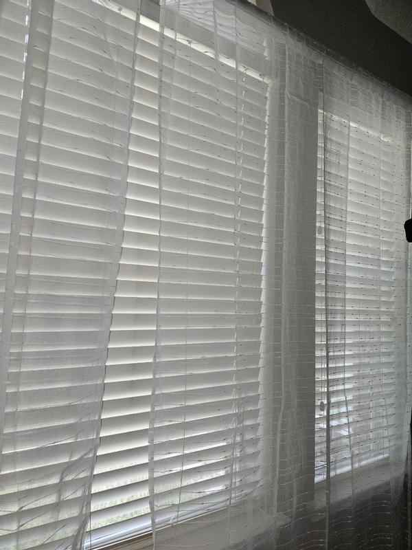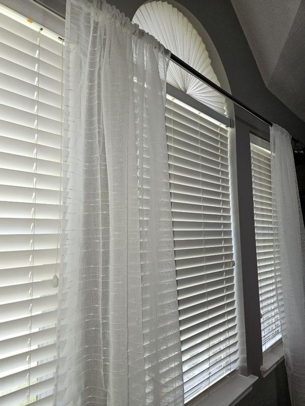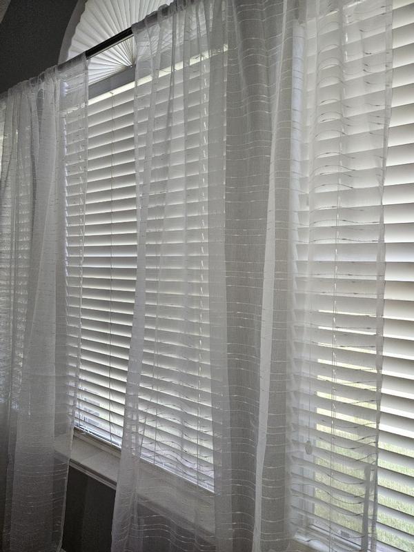 Its s beautiful and delicate curtain sheer white with burlap makes them so unique perfect for summer. unfortunately its too short for my house so i will not be able to user