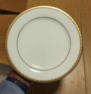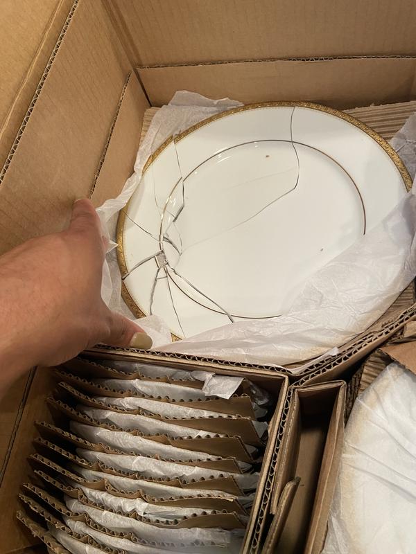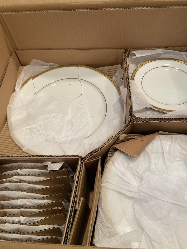 I just received this 60-pc noritake dinnerware set with gold trimmings. Naturally i was so excited to open the box. It was well packaged. Its box was inside another box. The 1st layer was the cups and upon inspection, nothing was broken. Next i checked the dinner plates. The 1st plate was intact, i was happy. Then when i lifted the 1st plate, i saw the 2nd plate was broken. I was dismayed. Then the same with the 3rd and 4th plates. I was expecting the rest of the plates were all broken, but they weren’t. Also nothing was broken with the saucer, the bread and salad plates. I didn’t want to go the hassle of returning it because it was so heavy plus I tore open the outer box to be able to open the original noritake box. I wish they can do something about it.