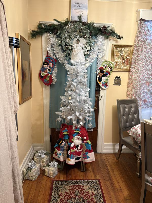 This angel is the perfect size for my small white tree. It is very beautiful. The fabric, fiber optic lights and detail of the face are exceptional. I will treasure it for years to come.