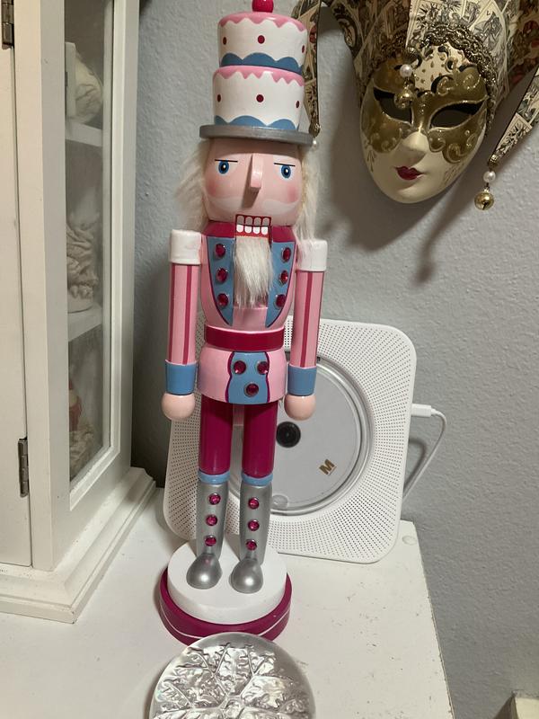 I love this nutcracker! He’s so cute, dressed in pastels, he matches the decor of my small living space in assisted living. I’m very pleased with the way he’s constructed, and the way he’s finished. Considering the price, I think he’s a bargain. I would gladly recommend this darling guy to help guard anyone’s treasures. 😊