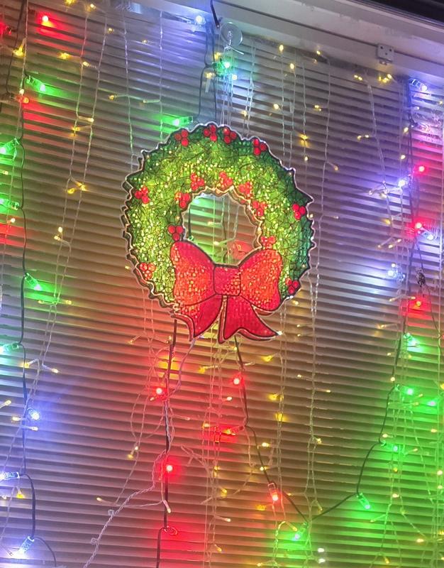15" Lighted Holographic Christmas Wreath Window Silhouette Decoration