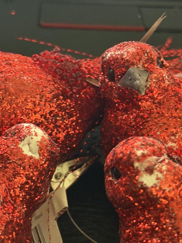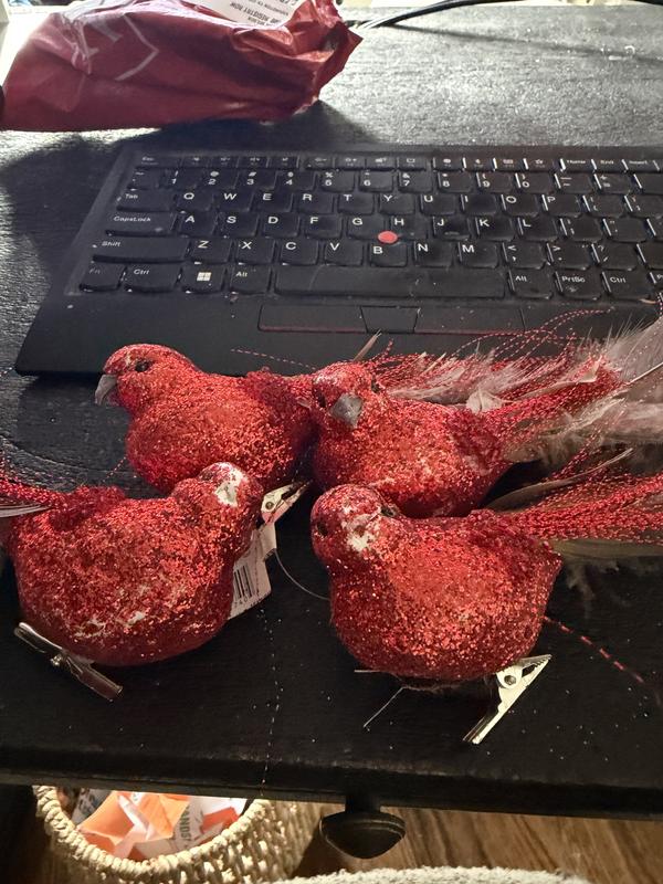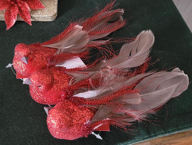 They are gorgeous BUT they have brown tail feathers and bears, not crimson red. At some point, the manufacturer made a change and the item online wasn't updated. They sent a replacement order and I got the same red & brown birds - which will not work on my red & pink Valentine's tree. Customer Service was great, and the birds are beautiful so 4 stars, minus one for needing to fix the photo and description - just wanted to provide info to anyone considering ordering.