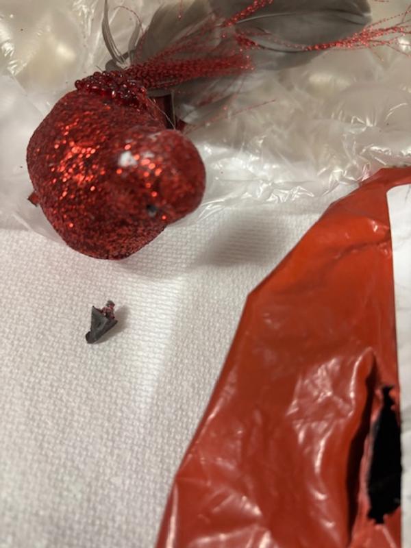 I received this ornament a few hours ago and the face/beck was broken due to very poor packaging. This bird was in a small plastic bag that was damaged in shipping - small piece of bubble wrap that didn't completely wrap the bird. Need to get refund.