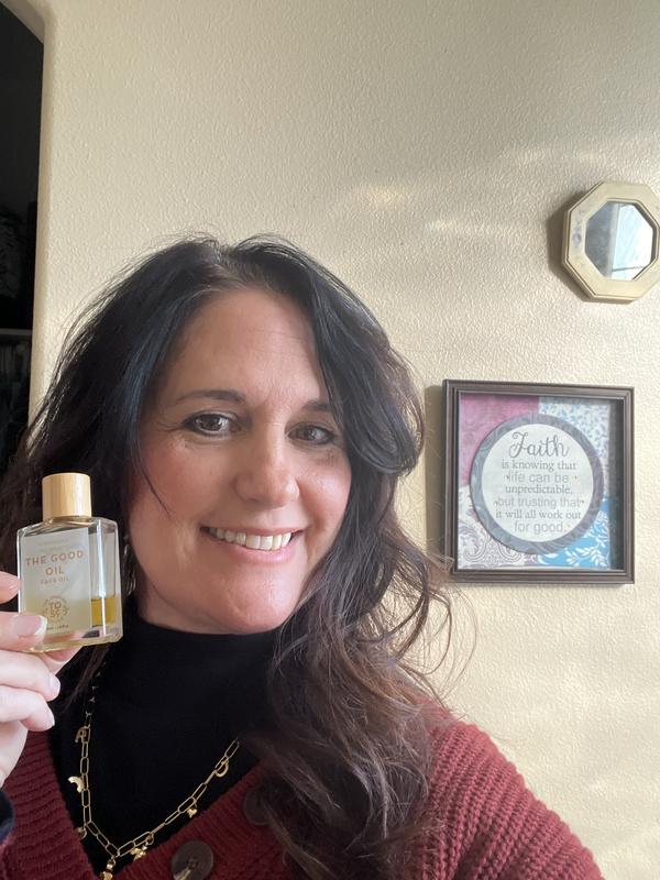 Hi Sharon, we are so glad you are happy with your decision to try The Good Oil. It is wonderful to hear that it feels great on your skin and fits so comfortably into your routine. Thank you for choosing The Organic Skin Co.! Best, Shiela The Organic Skin Co Support