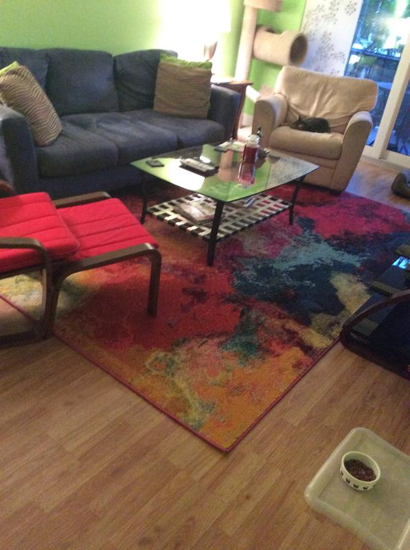 We bought this rug to add a splash of color or should we say colors and we love it!!!!