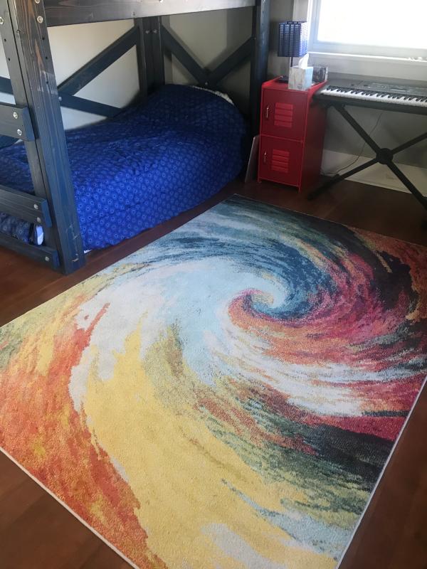 I just received my carpet to put in my dining room. The size is just right and I have all the colors of the rainbow to bring a pop to the room. The colors are not too loud and it gives the space some uniqueness and compliments my chairs. Love it!