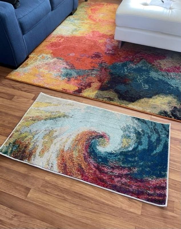I bought this rug for my front door to compliment the 10' x 12' Nourison Celestial Palette abstract area rug I bought last year. I love the wave design and it really does pick up on the area rug without being too matchy matchy.