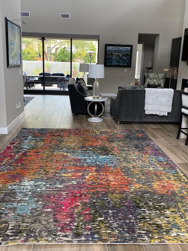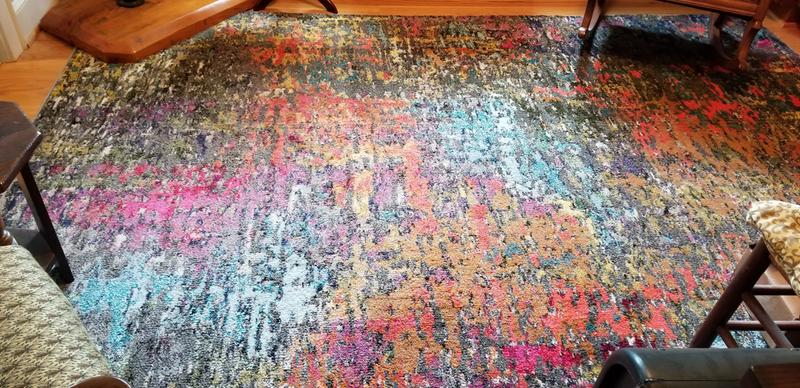 I bought the 9 x 12 Celestial Sunset rug to add some color to the entryway of our fairly monochromatic contemporary house. Initially I was concerned that the rug would be too colorful, but it has just enough gray and muted tones that make it a lovely addition to the space without looking too "circus like". Even though the rug is manmade, it definitely doesn't look cheap. I also expect that it will wear well in the entryway. Overall I highly recommend it for the price, which is extremely reasonable for such a large area rug.
