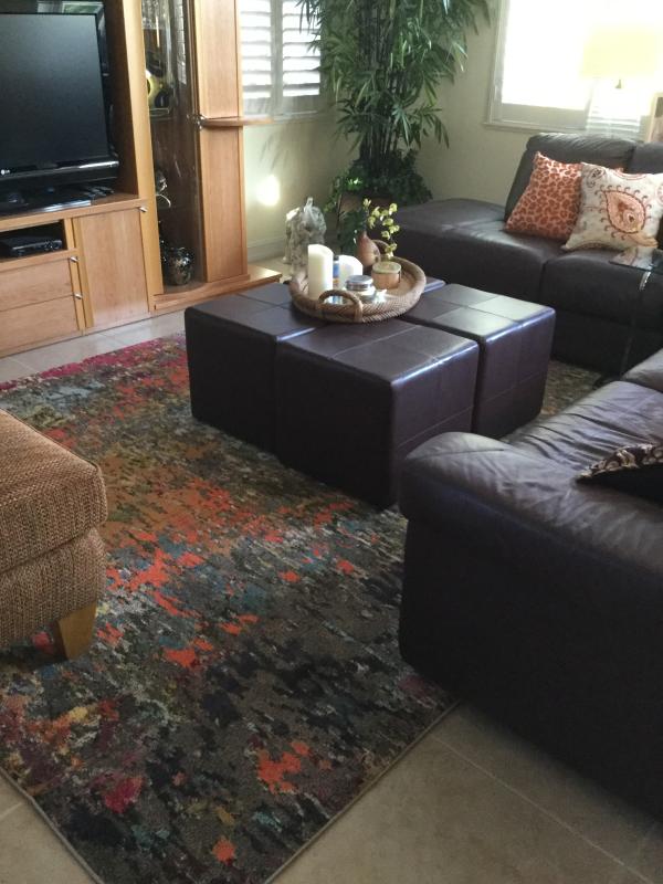 We had the rug 2 months before we could put it down. But once we did - WOW! Love all the colors and goes great with our aubergine leather sectional.
