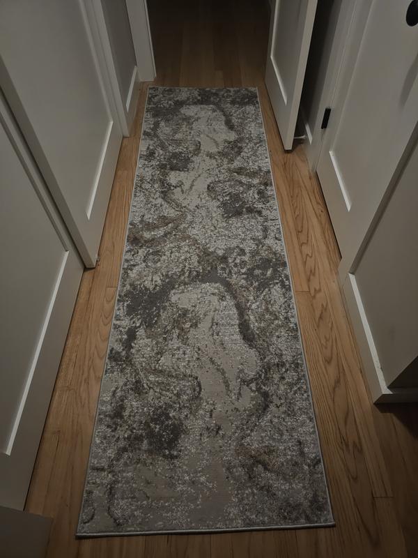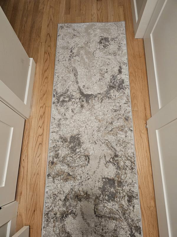 I was looking for neutral rugs to add to my almost completely hardwood home and this was one matched the one of three larger rugs I chose. I was so happy to find the Elation collection as I was nervous how I'd manage to coordinate multiple rugs in the house. This one is in my master bedroom hallway. I also have to say I was nervous about having creases but it came rolled up and it laid flat perfectly as soon as it went down. The swirl of whites and grays is so pretty and even gives a different look depending what side/angle you are looking from (I showed both ways in my pictures). The rug is thin but soft and I didn't add padding under this one since it's mostly for decoration. I would highly recommend to add to your neutral, modern, farmhouse, clean style.