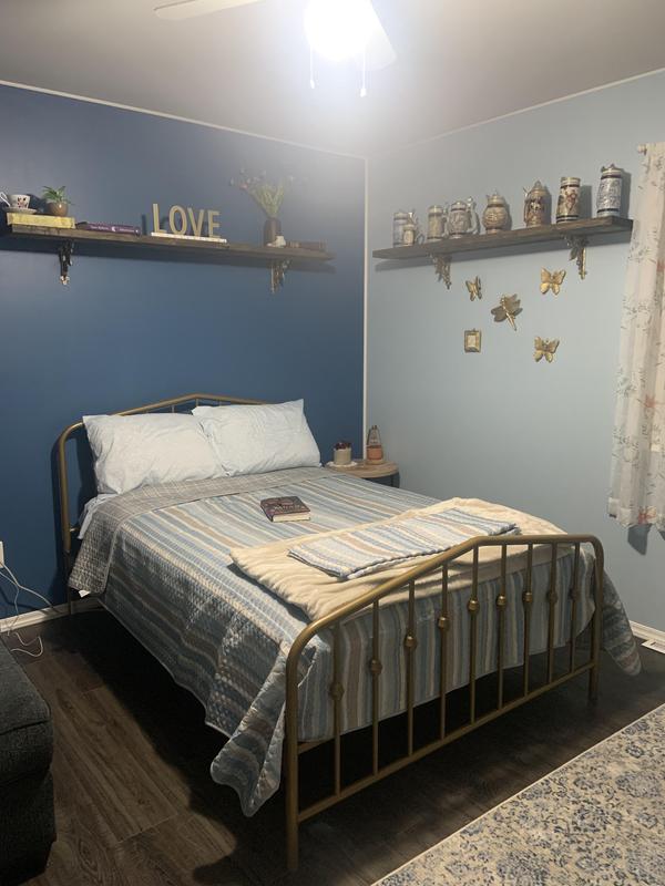 The looks of the bed is beautiful, would like touch up paint to fix all the metal showing, the only thing I don't like is when you're dog jumps on the bed or your partner moves it shakes the whole bed, but beside that it looks good.