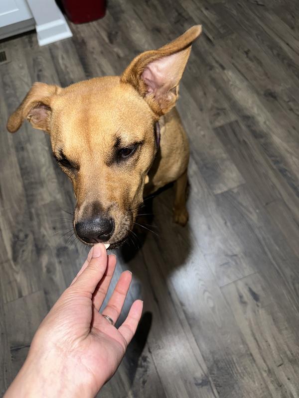 I had the hardest time getting my 10 months old shih-poo to take this. She’s picky so she picked through and find it and she doesn’t like hard things so she didn’t take it. I’m sure the product is great she just wouldn’t try it.