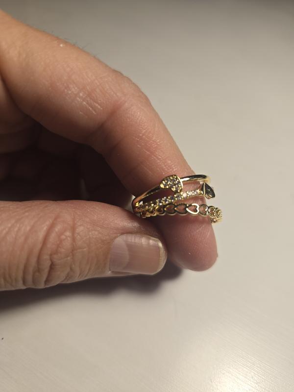 Gold Plated 3-Piece Clear Cubic Zirconia and Band Ring Set