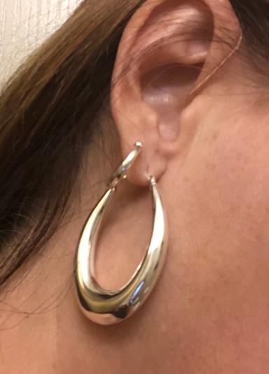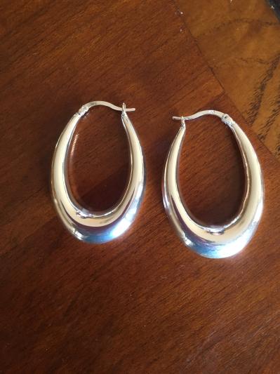 Large Silver Plated Polished Graduated Puff Medium Hoop Earrings